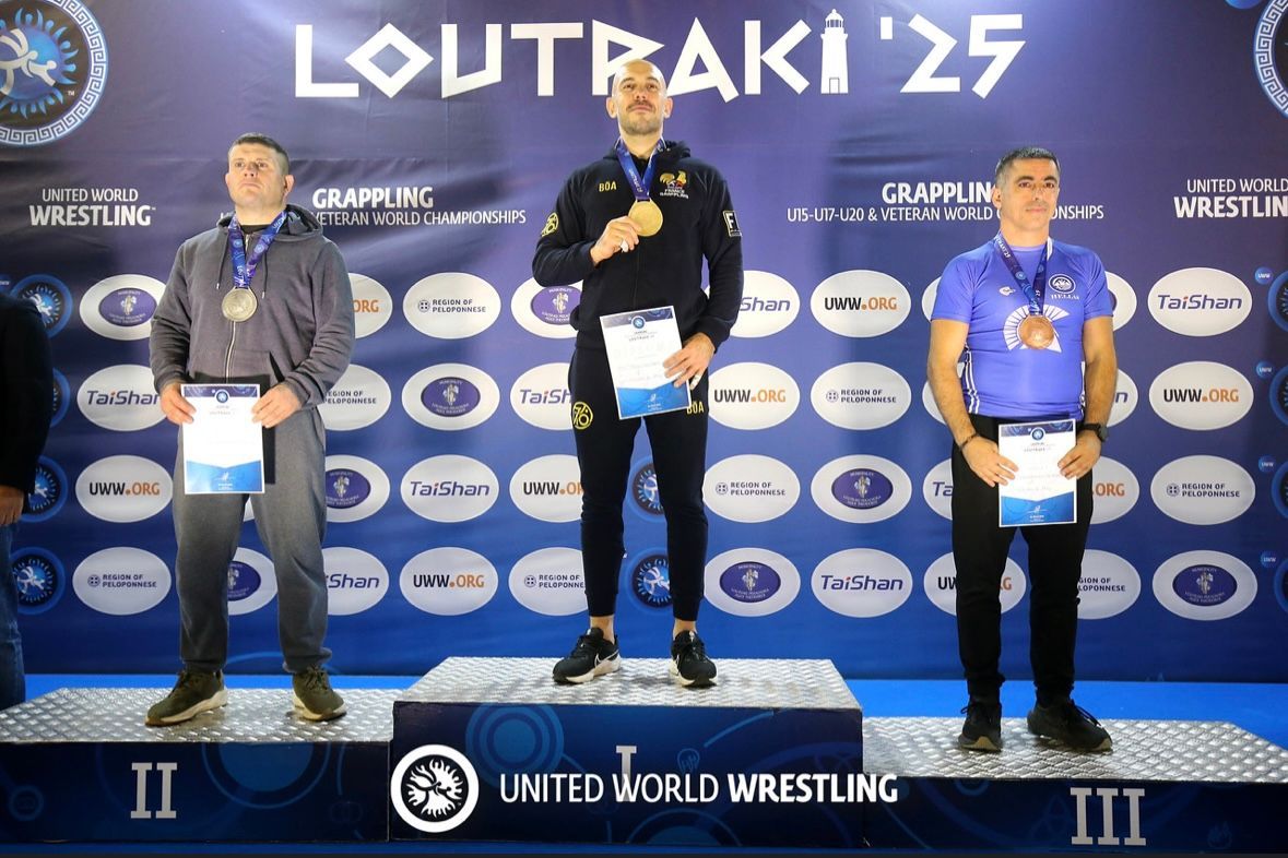 Le 03 Novembre 2025, notre head coach Pierre-Yves FERRER est parti à LOUTRAKI en Grèce afin de disputer les Championnats du monde de Grappling Vétéran UWW.